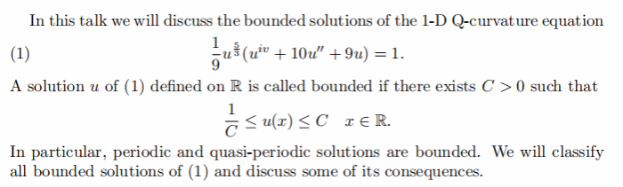 报告题目:Bounded Solutions of 1-D Q-Curvature Equation