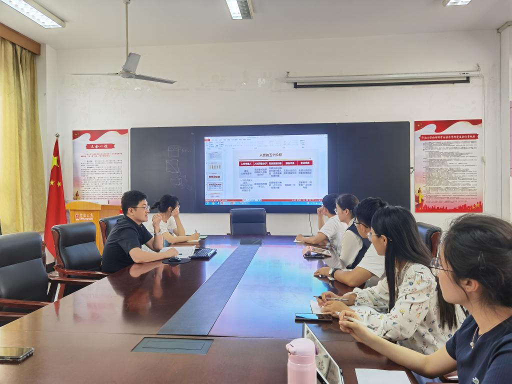 随后,张宾介绍全国党员管理信息系统的维护工作,明确各支部需要在规定时间内完成录入工作,并且督促各支部对党建档案进行自查自纠,核对入党申请时间、入党积极分子身份确立时间、发展对象身份确立时间、预备党员身份确立时间、正式党员身份确立、转正时间、党龄起算时间等关键时间节点。张宾指出,各党支部需要认真做好发展党员工作,规范发展党员工作流程,保证发展党员的质量。
