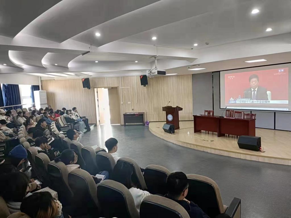 11月12日上午10时,中共中央就党的十九届六中全会精神举行新闻发布会。香香腐宅 师生准时在包玉书9号楼113报告厅组织集中观看直播,学习全会的精神。