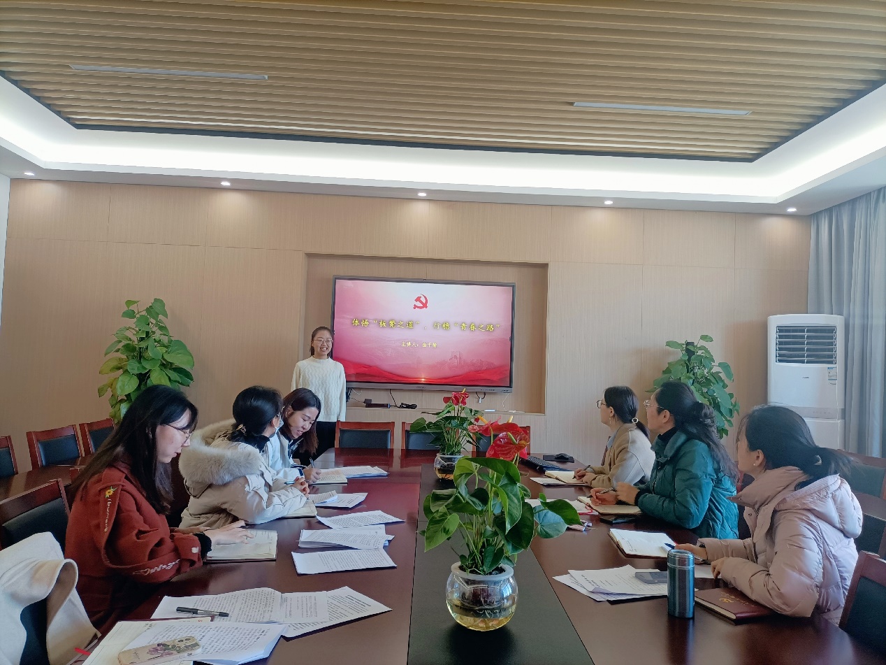 最后,支部成员金千愉围绕“厚植为民情怀,行稳初心之道”“砥砺担当作为,行稳实干之道”“众志合力一心,行稳团结之道”,为支部带来了微党课《体悟“板凳之道”,行稳“青春之路”》,提倡大家要勇于传承“板凳之道”,争做有志气、有骨气、有底气的高校教育工作者。