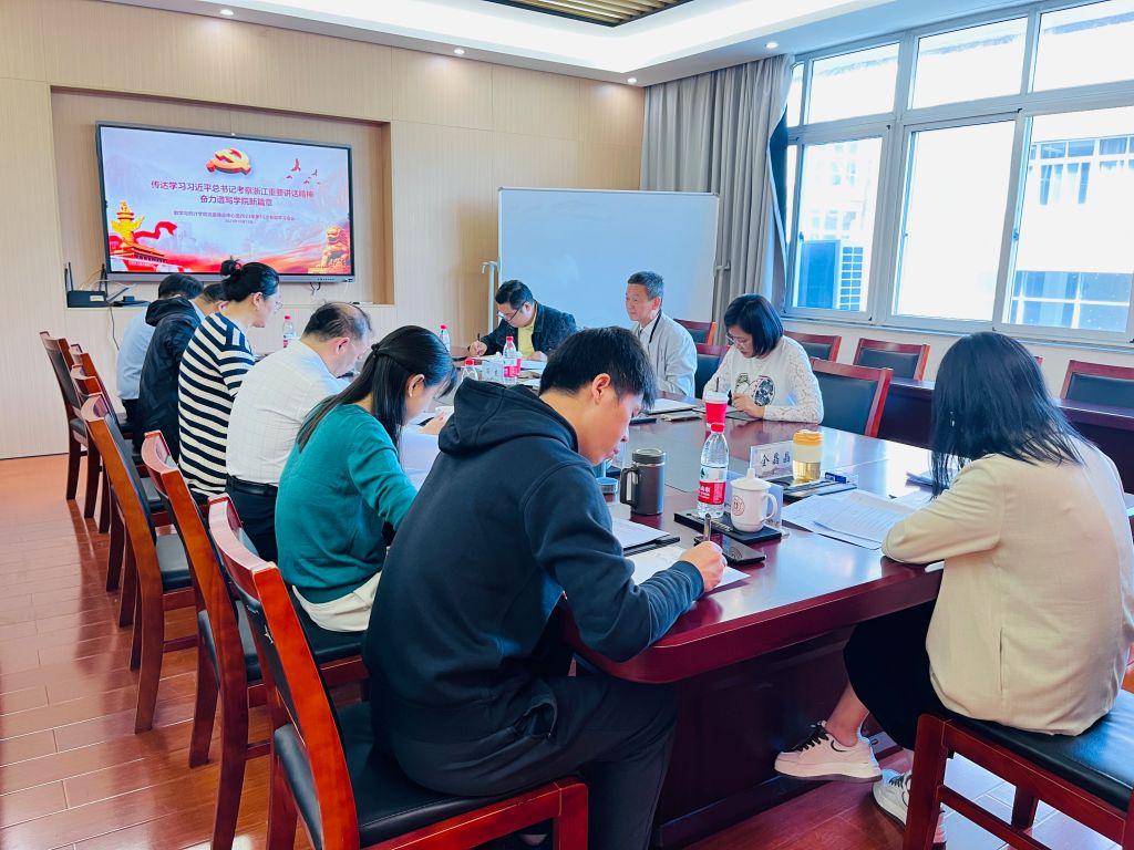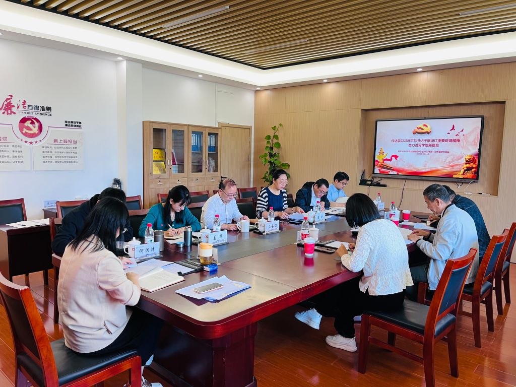 会上,院党委书记带领与会成员一起学习了习近平总书记考察浙江重要讲话内容,传达了省市两级常委及干部会议的相关精神,并结合学院工作实际作《学习习近平总书记考察浙江重要讲话精神,奋力谱写学院新篇章》的主题发言。她认为,作为关键少数的领导干部,在实际工作中要善于从政治上看、从大局上谋,应增强前列意识、强化前瞻思维、加快前进脚步,面对学院发展中的问题,应坚持穿心破难、改革破题、开放破局的拼搏劲头和干在实处的务实作风,创造经得起历史检验、人民群众考验的真业绩。党政领导班子其他成员结合专题学习内容与工作实践,交流了学习体会。