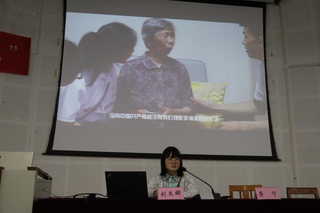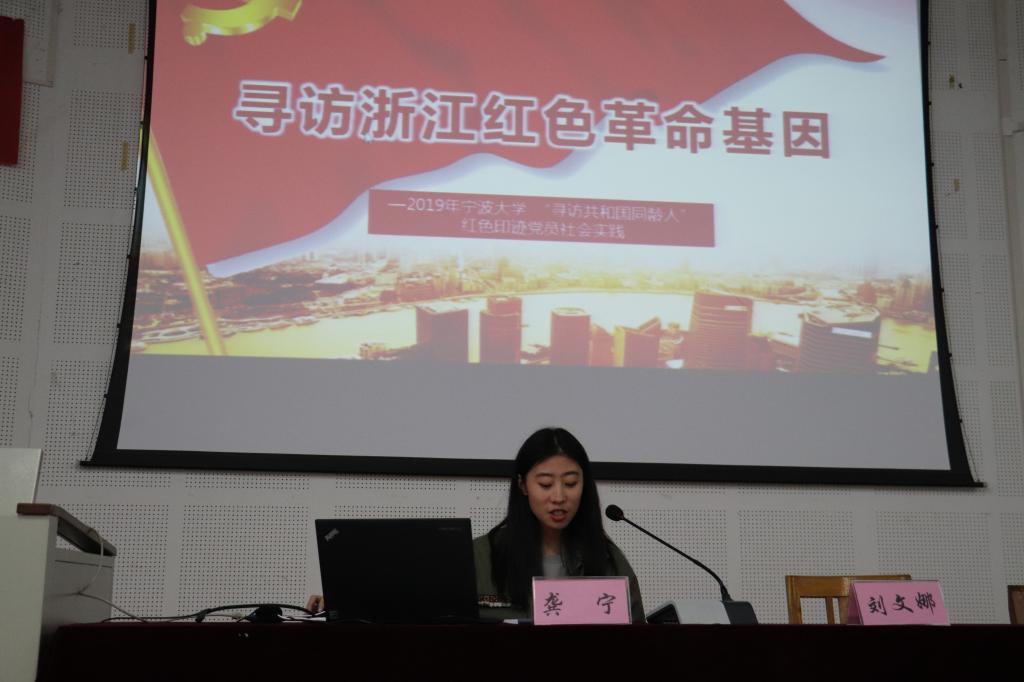 一开始,刘文娜以“寻访地方改革发展动力”为主题展开,从海岛变迁、高校发展、工业崛起三个篇章进行描述,讲述了10名优秀老党员及祖国发展奉献者的故事。他们心系人民疾苦,奋斗在脱贫攻坚第一线,用行动播种,用道理耕耘,用汗水浇灌,用心血滋润;他们心怀高远、勤勤恳恳为我国教育事业发展默默奉献;他们不畏困难,挑起建设和改革的大旗,用自己的双手闯出一片天地。正是他们的无私付出,我们的祖国才变得越来越强。随后,龚宁以“寻访浙江红色革命基因”为主题讲述了宁大师生寻访共和国同龄人的故事。实践队员分别走访了抗战老兵徐尔月、王春胜、老年协会会长裘荣浪、乡村建设者沙国佳,他们的故事更是让人佩服,他们一生为国奉献,兢兢业业,风雨兼程。