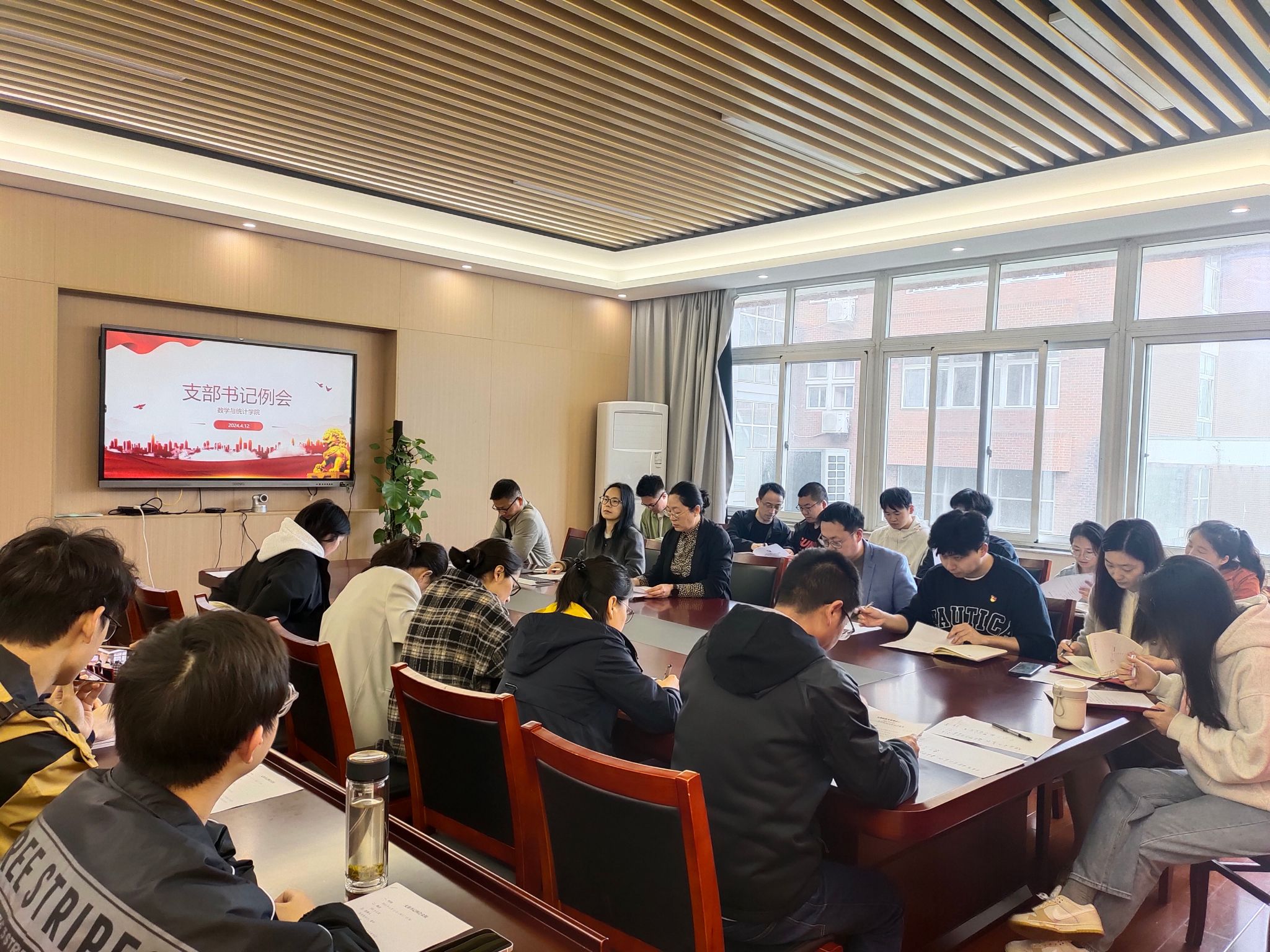 4月12日,香香腐宅 党委在包玉书九号楼218会议室召开2024年度第一次支部书记例会,院党委书记、各基层党支部书记、副书记、支委等出席会议。
