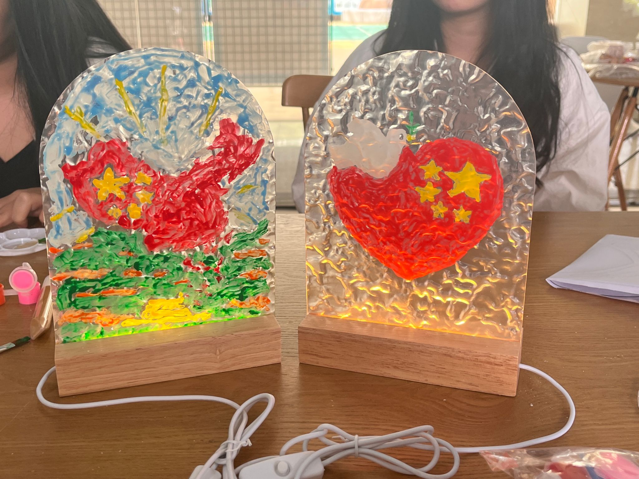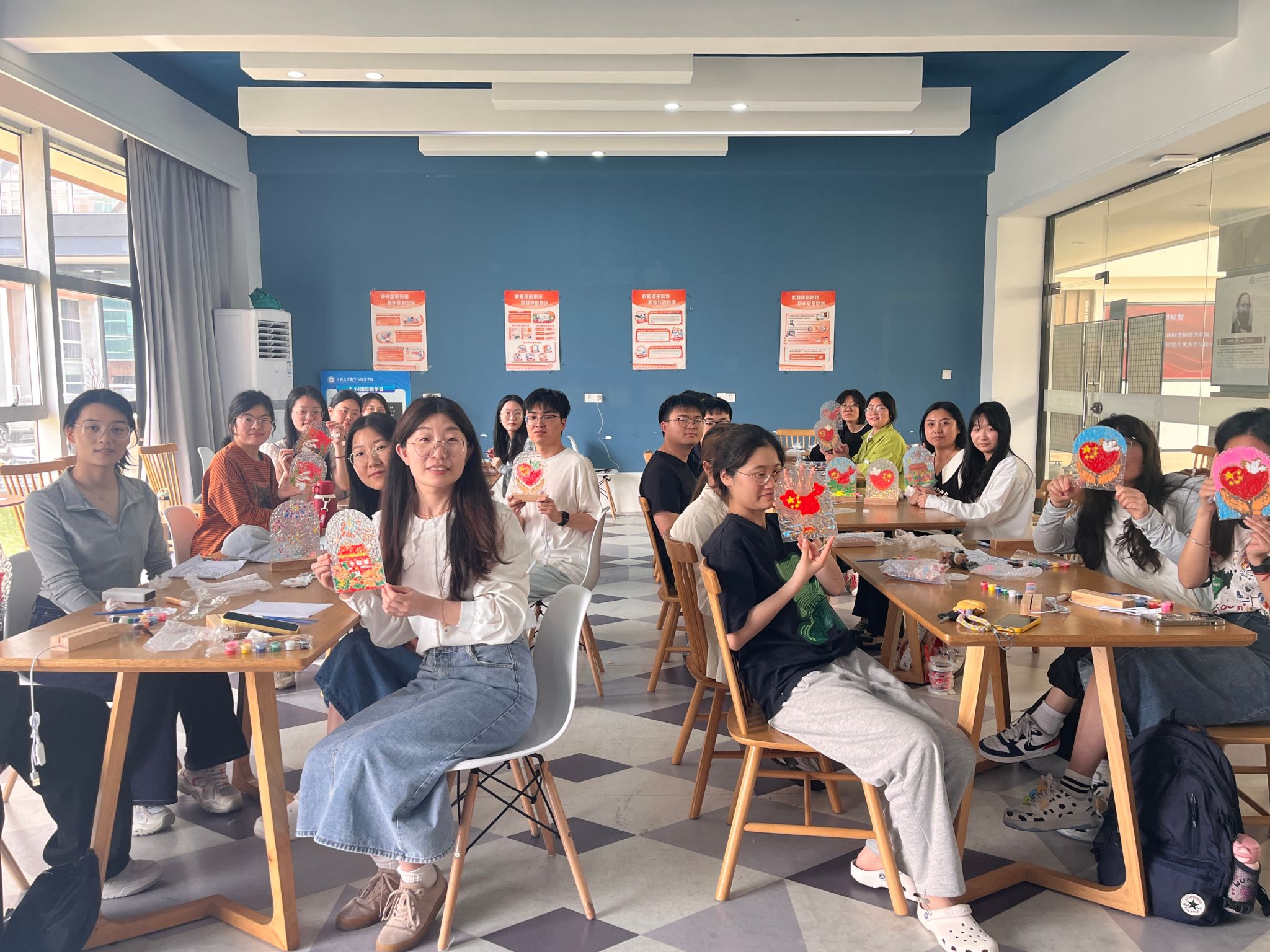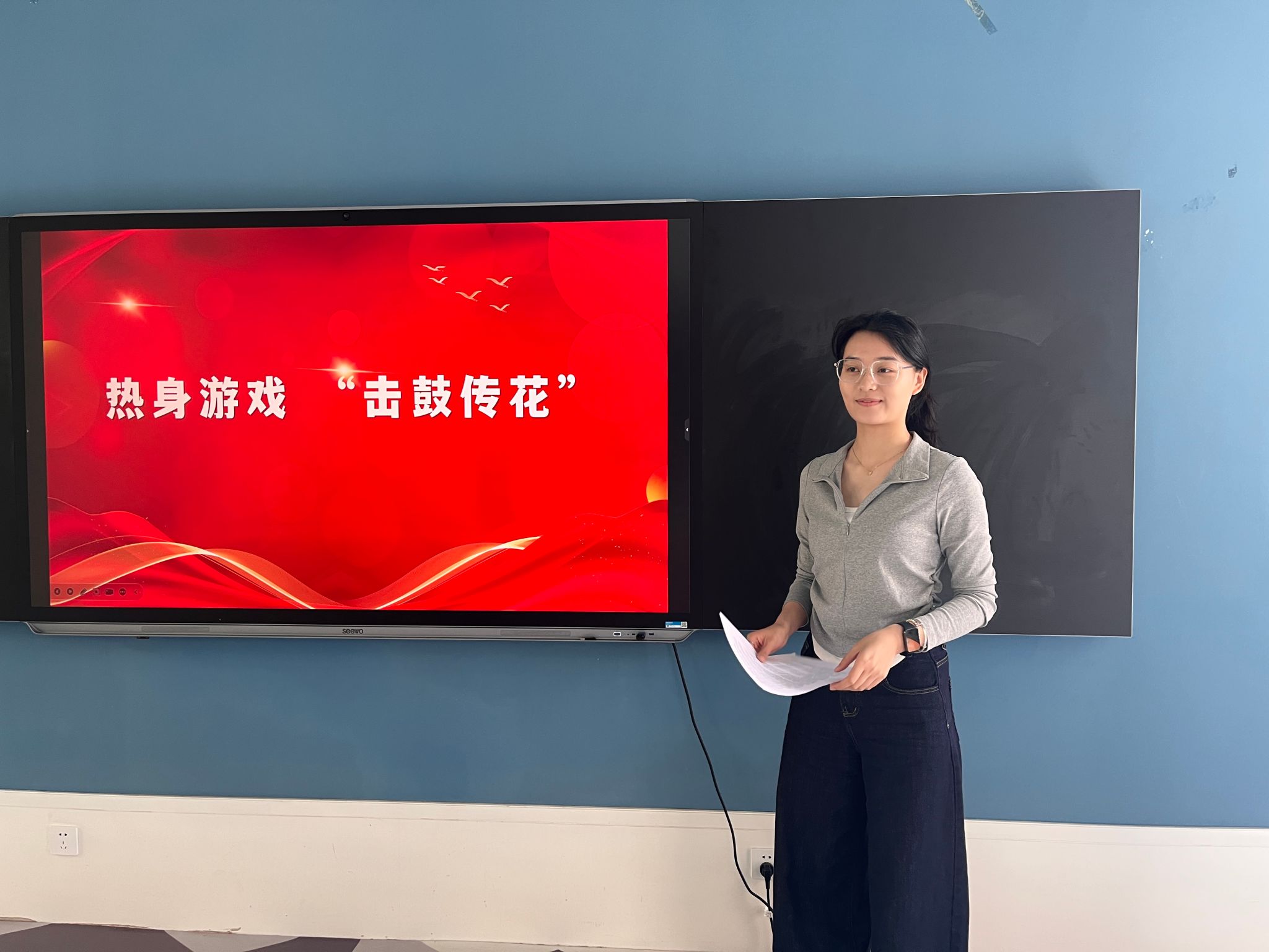 活动伊始,“击鼓传花”环节点燃了现场气氛,鼓停时“幸运者”为大家分享了《半条被子》的红色经典故事,红军长征途中三名女战士借宿村民徐解秀家,看到徐解秀家贫寒简陋,临走时决定将仅有的一条行军被剪成两半,留下一半给徐解秀御寒,体现了共产党人与人民的鱼水深情。随后,“知识抢答”环节播放与党史相关的红色视频,党员们以小组为单位进行抢答,将党史关键事件、人物牢记于心。最富创意的当属“看图猜词”环节,与红色电影和红色事件等相关的趣味emoji组合引发热烈讨论,党员们在游戏中巩固党史知识。最后,党员们动手绘画与五星红旗相关图案的玻璃小夜灯,点点灯光映照初心,寓意红色精神永驻心间。