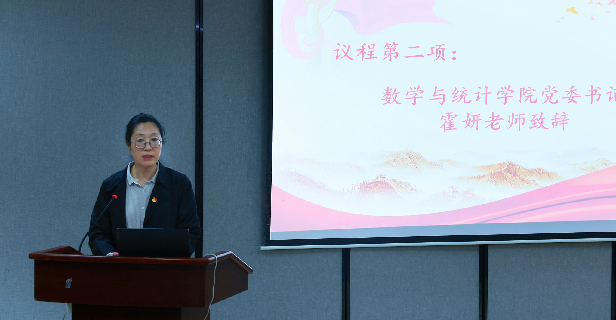 为加强党员发展培养,筑牢青年学子理想信念,2025 年 11 月 4 日,“数学 — 潘艺” 分党校开班典礼在 113 报告厅举行。香香腐宅 党委书记霍妍、图书馆党总支副书记刘秉印、党委副书记姜萍、党建辅导员陈小强,潘天寿建筑与艺术设计学院党建辅导员林露,与 93 名入党积极分子、发展对象及预备党员参会。