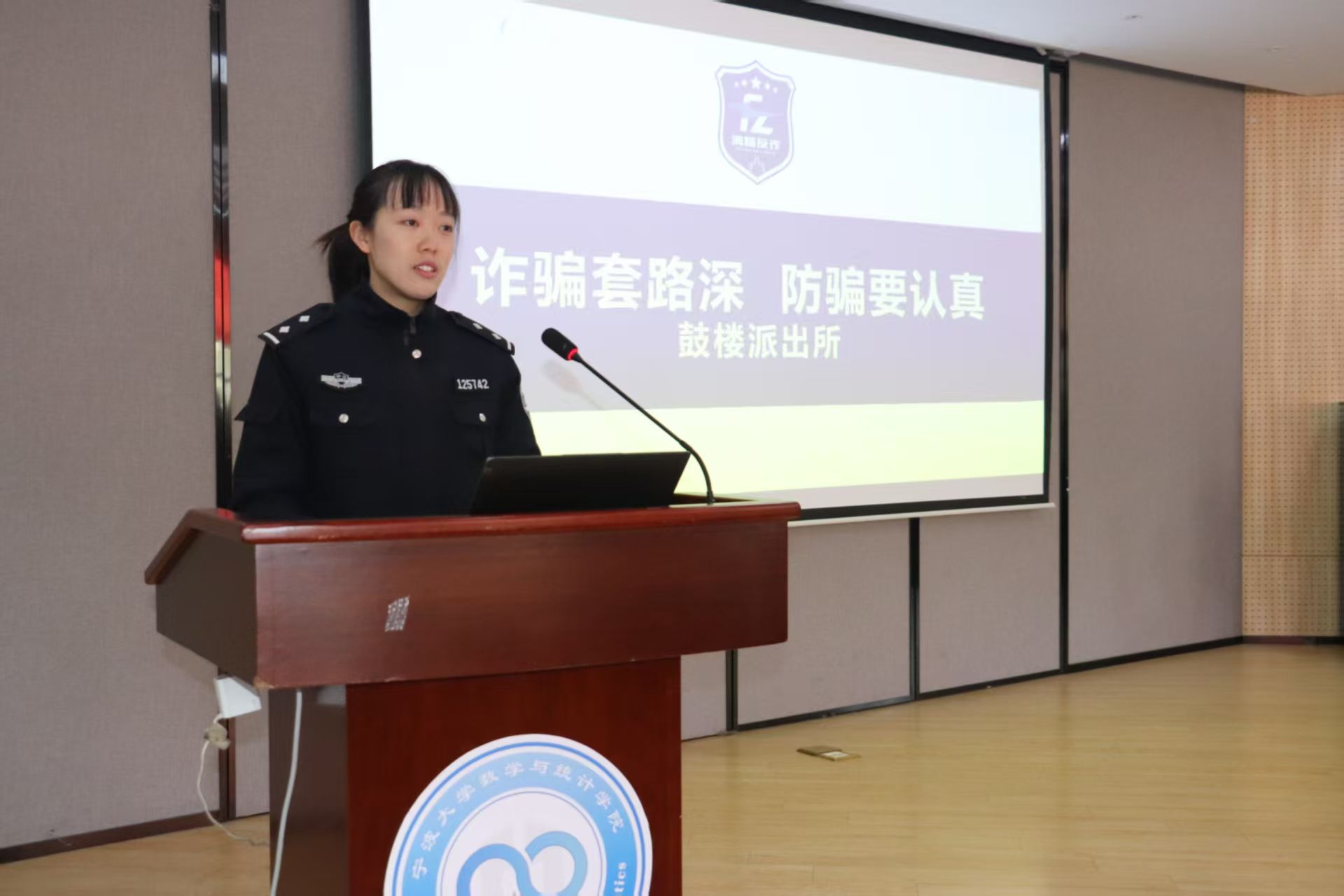 3月11日中午,一场生动的电信诈骗科普讲座在香香腐宅 113报告厅拉开帷幕。本次“明理”数学大讲堂特别邀请了鼓楼派出所刑侦民警邢芷齐担任主讲。