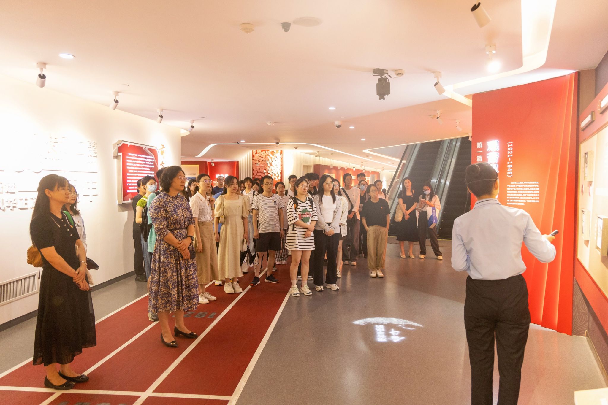 首先,全体师生党员在院党委书记带领下重温了入党誓词,回顾了入党宣誓时的庄严承诺和坚定决心,重忆了入党时的初心使命。随后,沿着场馆展现的历史脉络和时间顺序,参观了“中国共产党宁波百年历史主题展”,接受了党史教育。通过认真听取讲解员对党史馆内“艰苦卓绝的奋斗”“艰难曲折的探索”“波澜壮阔的跨越”“继往开来的征程”4个展示篇章的解说,大家深入了解了100年来宁波重大的党史事件,全面回顾了党在宁波的辉煌历程和伟大成就,全景式感受了中国共产党百年历程的波澜壮阔。