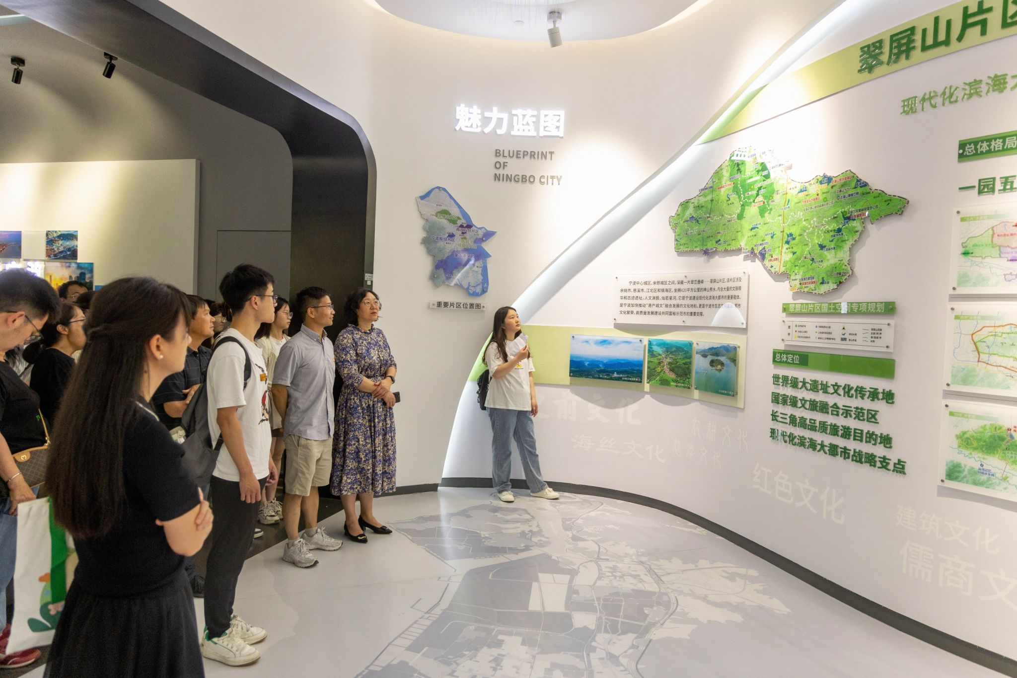 其次,在讲解员的带领下,先后参观了常设场馆内“未来宁波”“独特宁波”“绿色家园”“智创城市”等多个展厅。在参观过程中,大家全方位了解了宁波的城市发展历史,近距离体会了宁波的建设成就,深刻感受了宁波城市面貌变迁和群众生活品质提升的跨越式发展。