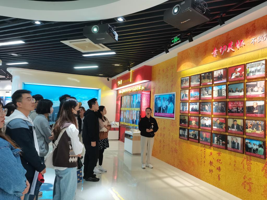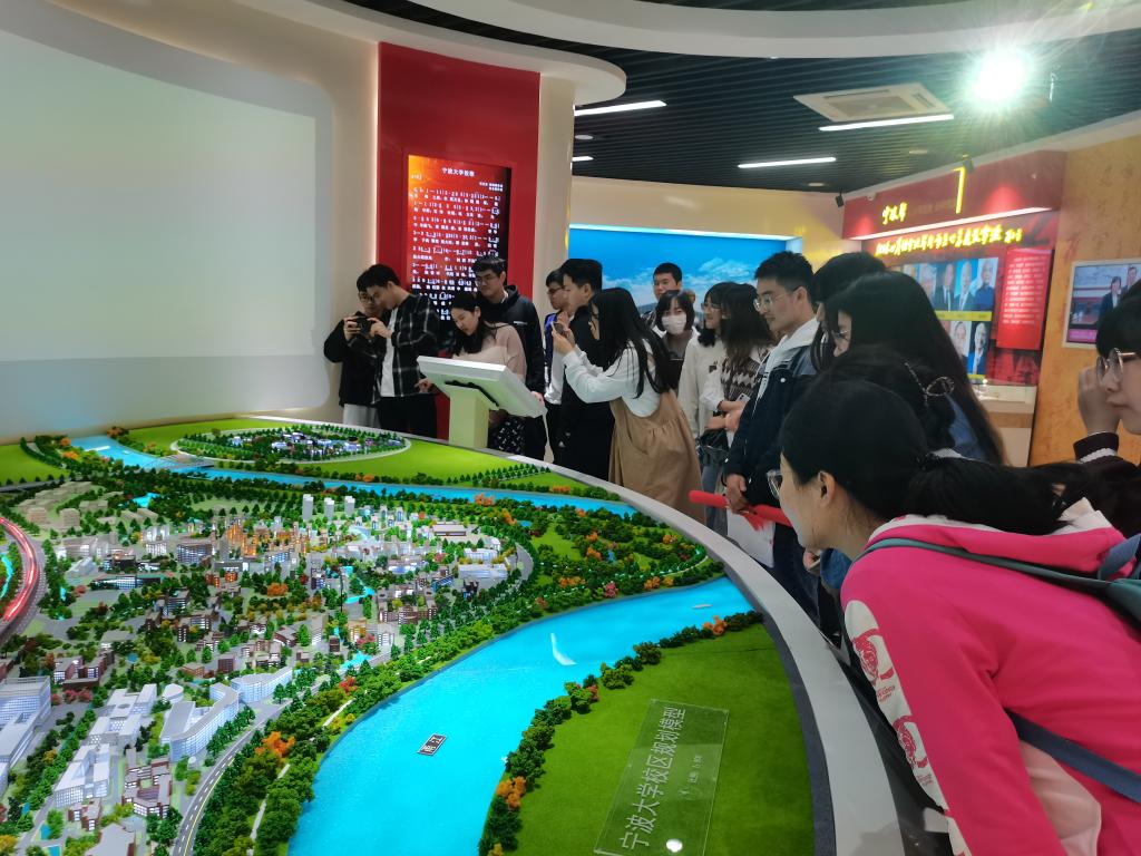 接着同学们跟随讲解员来到文化育人区、校友工作区和创新人才培养区,这里主要展现了弘扬“宁波帮”精神、杰出校友的感恩母校情怀以及始终注重创新型人才培养建设。
