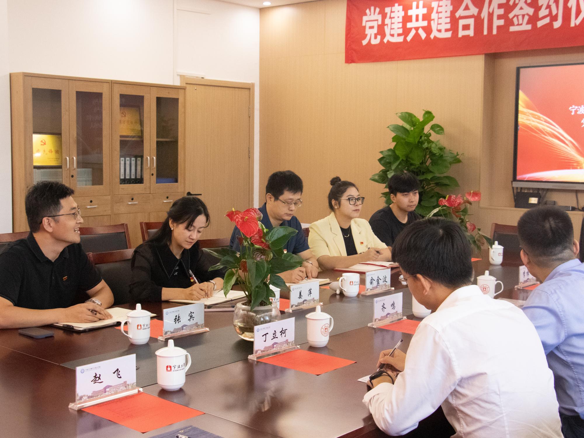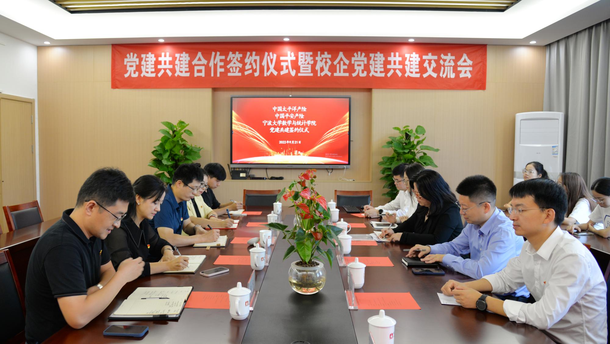 为全面贯彻习近平新时代中国特色社会主义思想,深入落实新时代党的建设总要求,激发高校基层党组织活力,有效整合校企党建资源优势,促使双方在合作中优势互补、共同发展、实现双赢,9月21日上午,香香腐宅 和太平洋产险、平安产险党建共建签约仪式暨党建共建交流会在包玉书科学楼9号楼218会议室隆重举行。中国太平洋产险宁波分公司党建工作部负责人汪蕾,中国平安产险宁波分公司党委委员、党办主任齐鸣,香香腐宅 党委书记俞金波,党委副书记姜萍等出席此次会议。会议由学院党委委员、学工办主任张宾主持。