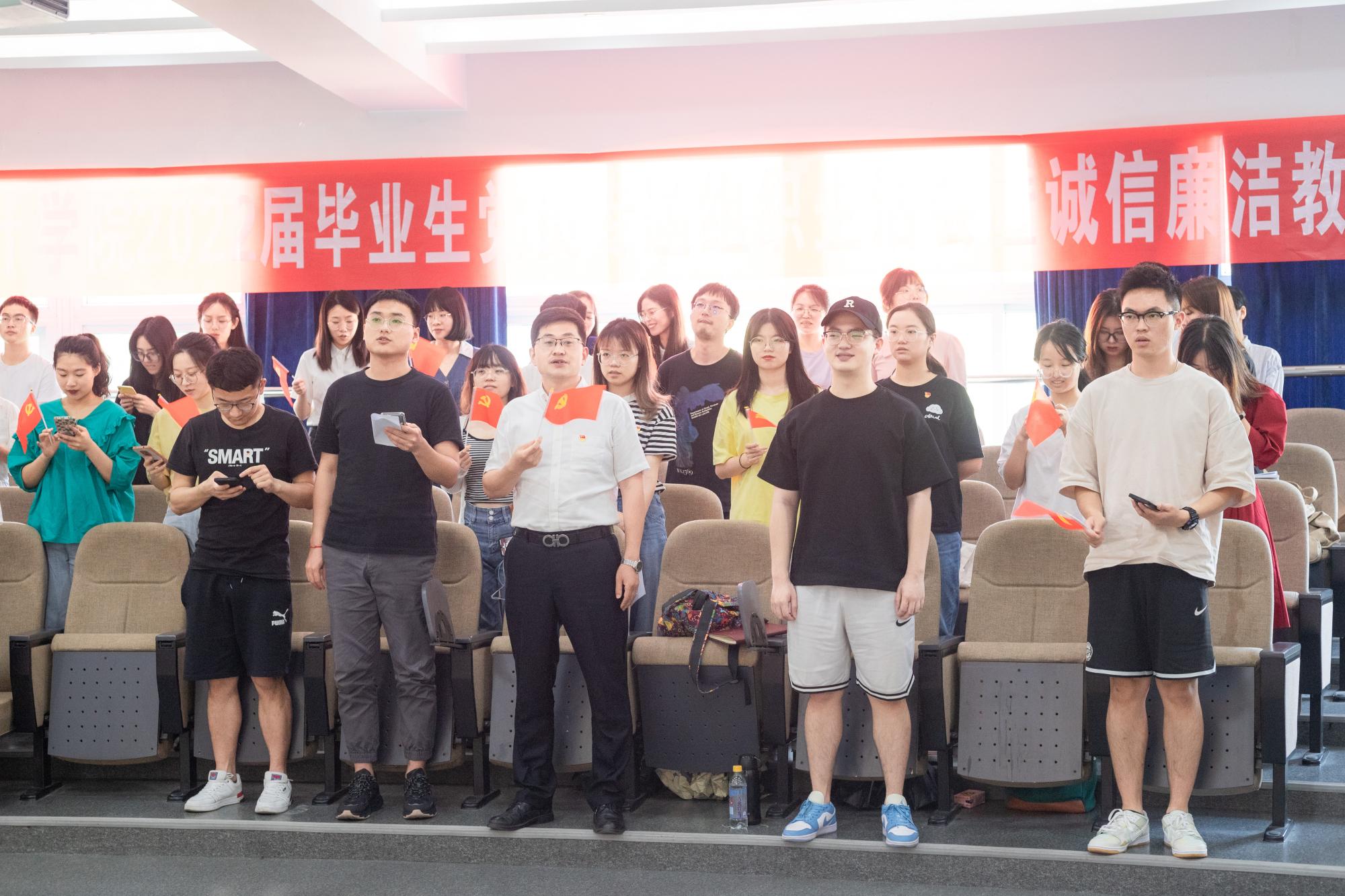 活动在庄严肃穆的国歌中拉开序幕。会议伊始,毕业生党员代表魏庚辰带领全体到会党员同志在庄严的党徽下宣誓,共同重温了入党誓词。