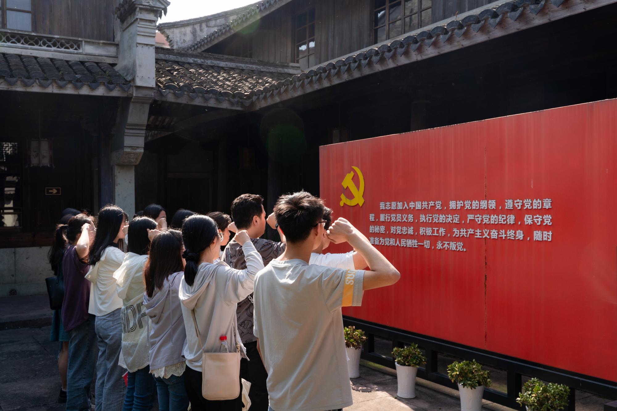 参观前,全体党员重温了入党誓词在铿锵的誓言中,师生党员们的初心受到洗礼,理想信念更加坚定。